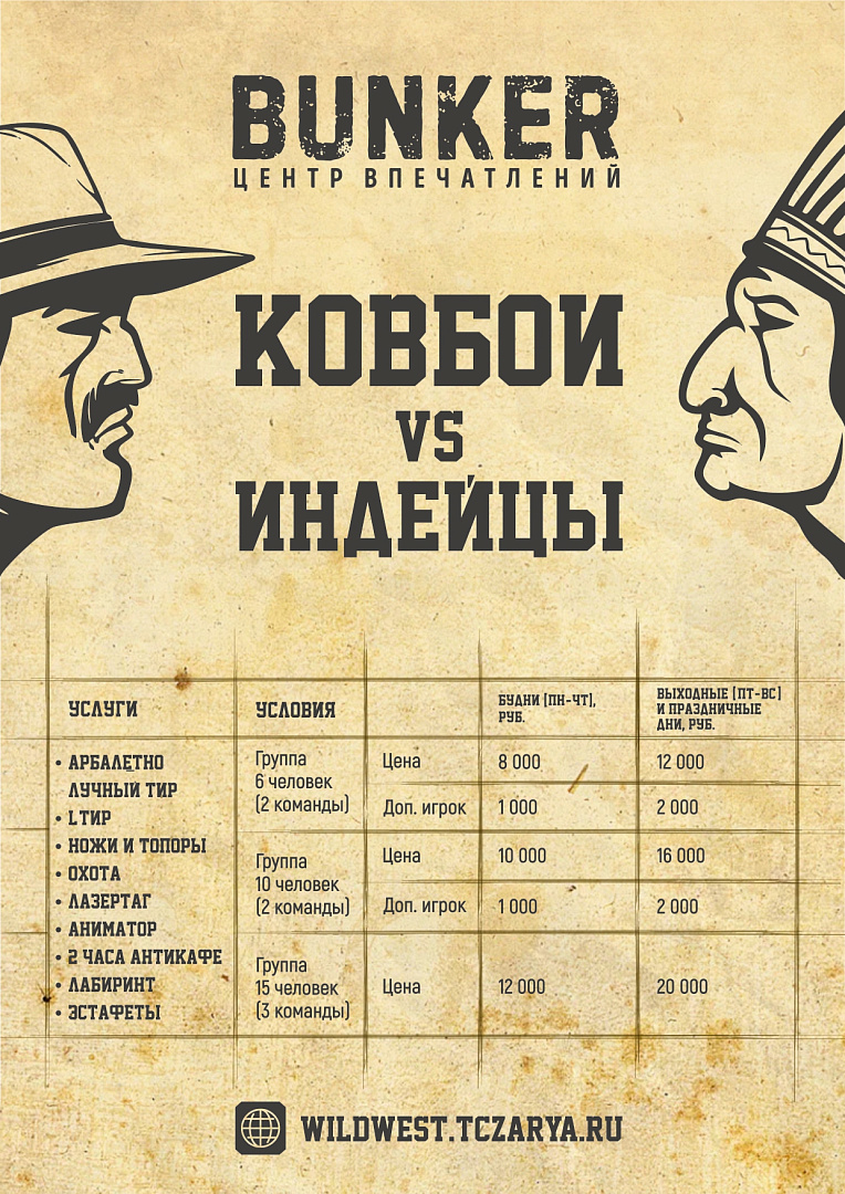 Вместе с лихим Ковбоем и отважным Индейцем участники делятся на команды, наносят боевой раскрас, наряжаются в ковбойские шляпы и перья.